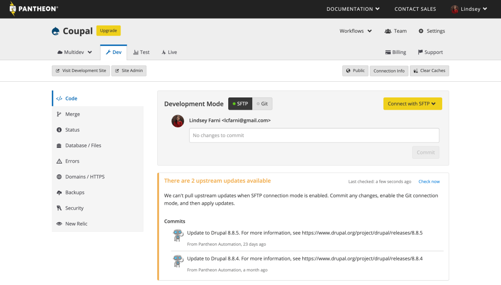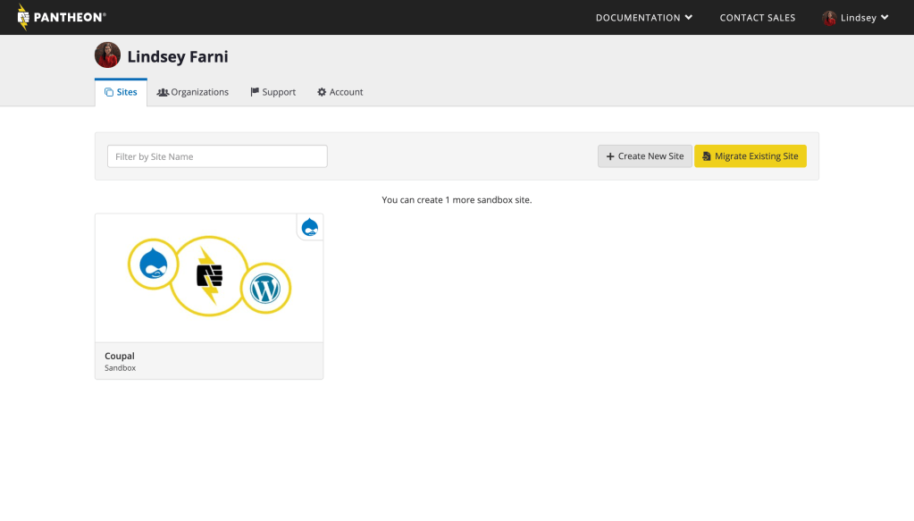 I named my site “Coupal” and I decided to go with Drupal’s Pantheon WebOps platform.